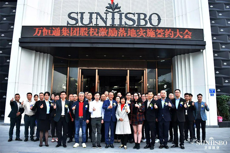 最后全员在圣蒂斯堡营销中心一楼合影,JDB电子集团集团第一次股权激励大会在大家的喝彩声中圆满完成。